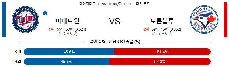 【MLB】 8월 6일 미네소타 vs 토론토