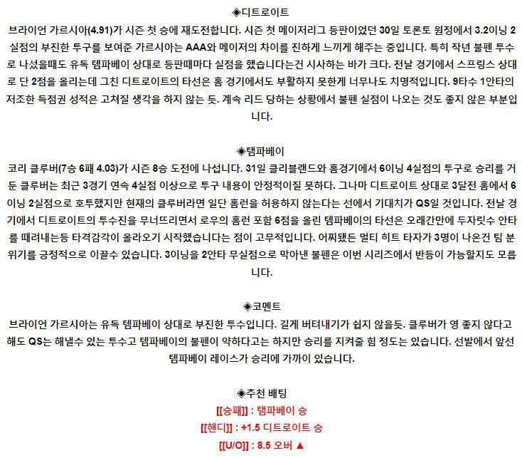 【MLB】 8월 6일 디트로이트 vs 탬파베이