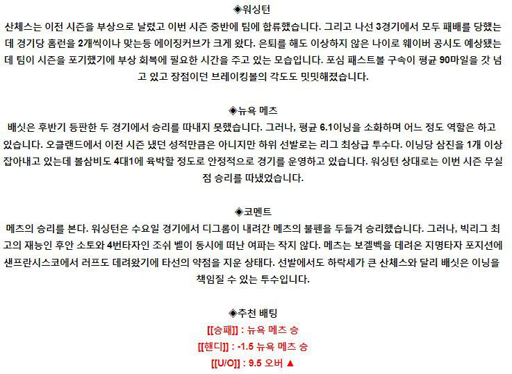 【MLB】 8월 4일 워싱턴 vs 뉴욕메츠