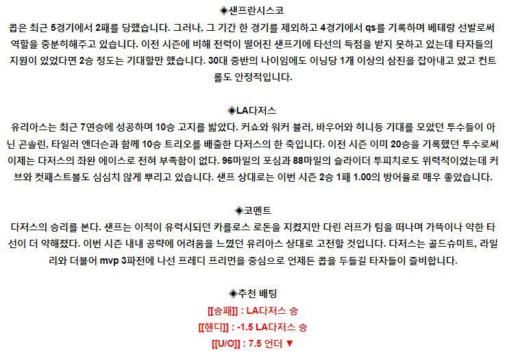 【MLB】 8월 4일 샌프란시스코 vs LA다저스