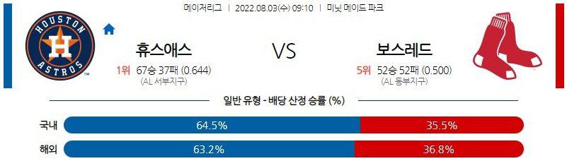 【MLB】 8월 3일 휴스턴 vs 보스턴