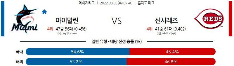 【MLB】 8월 3일 마이애미 vs 신시내티