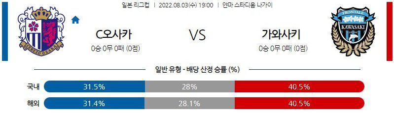 열람중 【J리그】 8월 3일 세레소 오사카 vs 가와사키 프론탈레 2022.08.03 234