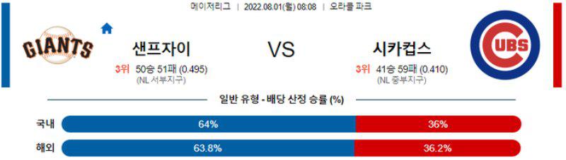 【MLB】 8월 1일 샌프란시스코 vs 시카고 컵스