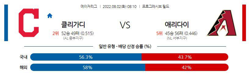 【MLB】 8월 2일 클리브랜드 vs 애리조나