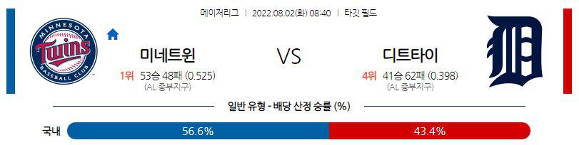 【MLB】 8월 2일 미네소타 vs 디트로이트