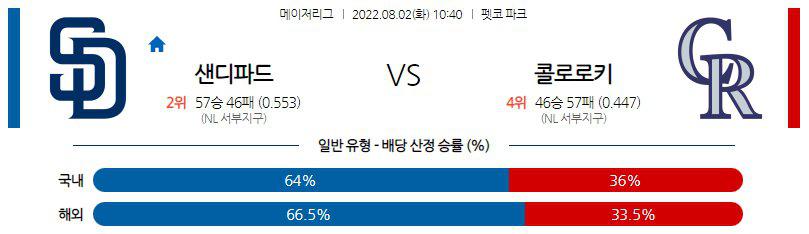 【MLB】 8월 2일 샌디에고 vs 콜로라도