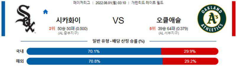 【MLB】 8월 1일 시카고 화이트삭스 vs 오클랜드