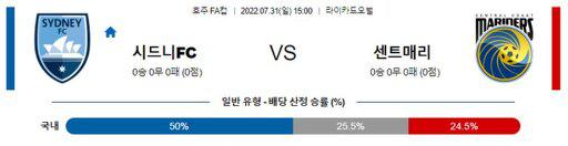 【호주FA컵】 7월31일 시드니FC vs 샌트럴코스트