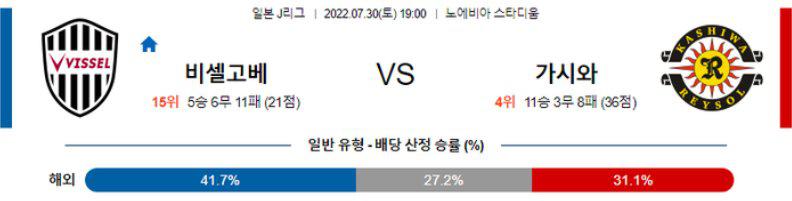 [J리그] 7월30일 비셀고베 vs 가시와레이솔