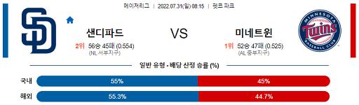 7월 31일 08:15 MLB 샌디에이고 : 미네소타