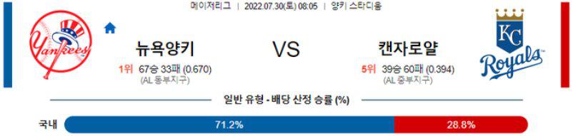 【MLB】 7월 30일 뉴욕 양키스 vs 캔자스시티