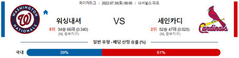 【MLB】 7월 30일 워싱턴 vs 세인트루이스