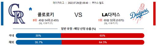 【MLB】 7월 29일 콜로라도 : LA다저스