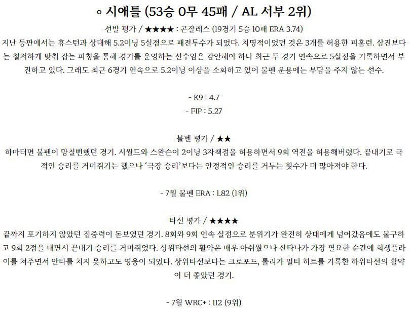 ◈보스턴 커터 크로포드(2승 3패 4.50)가 시즌 3승 도전에 나선다. 24일 토론토와의 홈경기에서 6이닝 3실점의 투구를 보여준 크로포드는 7월 방어율이 2.82로 거의 매 경기 QS 내외의 투구를 해낼수 있는 능력을 증명중입니다. 특히 동부 강팀 상대로 호조를 이어간다는 점에서 이번 경기도 QS 이상을 기대해볼 여지는 꽤 있는 편. 전날 경기에…