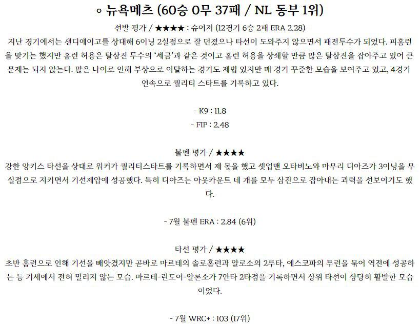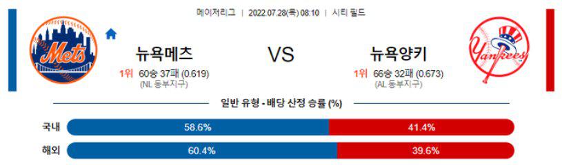 【MLB】 7월 28일 뉴욕메츠 vs 뉴욕양키스