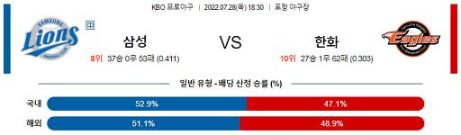 [KBO] 7월 28일 삼성 : 한화