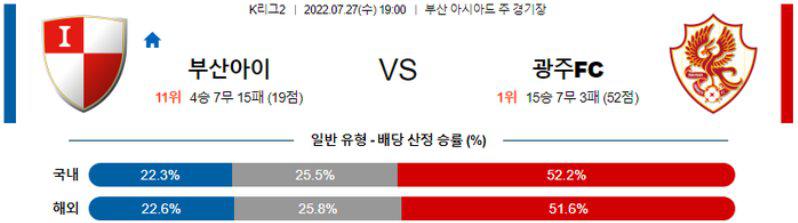 【K리그2】 7월 27일 부산 vs 광주 FC