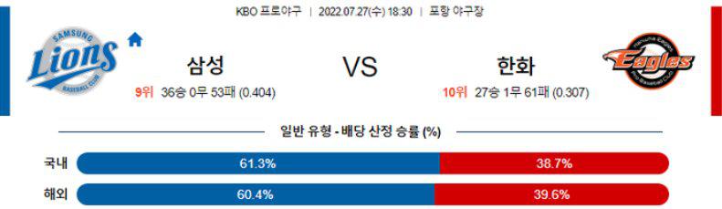 [KBO] 7월27일 삼성 vs 한화