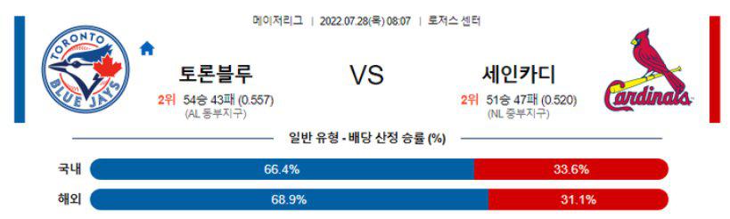 【MLB】 7월 28일 토론토 vs 세인트루이스