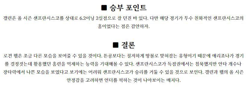 기아(놀린 2승5패 3.53) 션 놀린 투수는 직전경기(5/20) 홈에서 NC 상대로 6이닝 2실점(1자책) 승리를 기록했으며 이전경기(5/14) 원정에서 LG 상대로 5.2이닝 3실점 노디시전을 기록했다. 올시즌 KBO 무대후 8경기 2승5패, 4경기 QS 성적이며 3~4월 4경기 4패, 4.19, 5월 4경기 2승1패, 3.00의 기록. 개막전에서는…