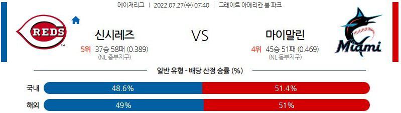 【MLB】 7월 27일 신시내티 vs 마이애미