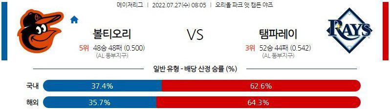 【MLB】 7월 27일 볼티모어 vs 탬파베이