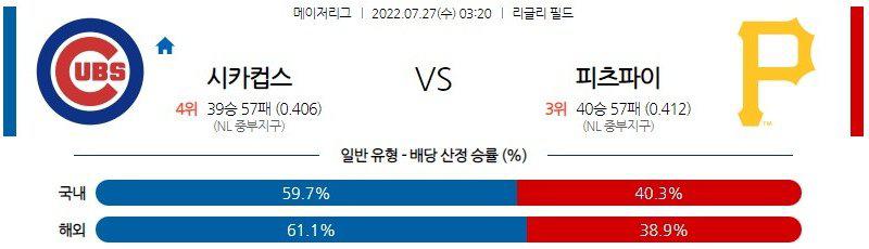 【MLB】 7월 27일 시카고 컵스 vs 피츠버그