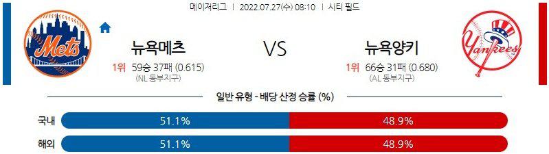 【MLB】 7월 27일 뉴욕 메츠 vs 뉴욕 양키스