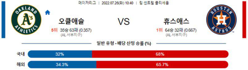 【MLB】 7월 26일 오클랜드 vs 휴스턴