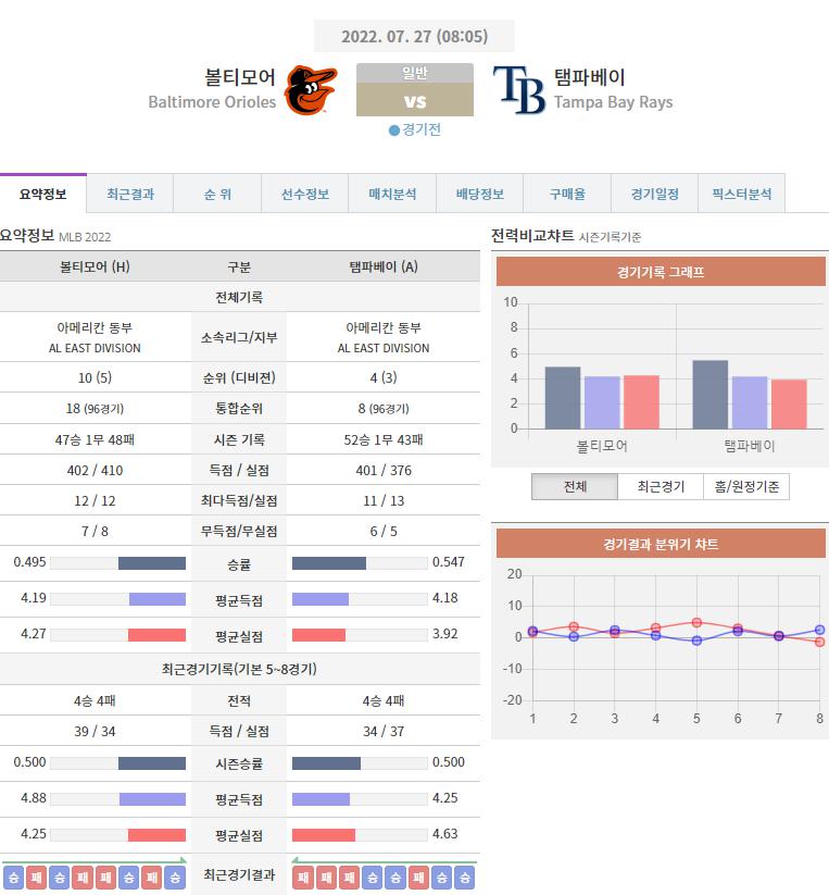 [스포츠분석][MLB분석] 7월 27일 MLB 분석 볼티모어 VS 템파베이 [출처] [스포츠분석][MLB분석] 7월 27일 …
