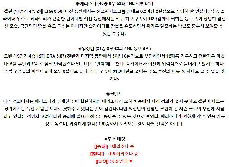 【MLB】 7월 23일 애리조나 vs 워싱턴