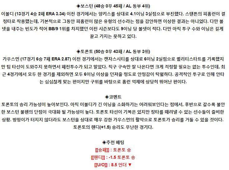 안녕하세요 스포츠 리포터 세린입니다. 오늘 MLB 분석은 볼티모어 VS 뉴욕 양키스 분석 준비했습니다. 분석글은 라인업 확인 전 초안입니다! 최종 경기 조합 픽이나 분석 영상은 유튜브 [스포츠 리포터 세린] 검색 후 확인 해주시면 감사하겠습니다! 볼티모어 VS 뉴욕 양키스 [볼티모어] 볼티모어는 이번 경기 타일러 웰스 선수가 선발로 등…