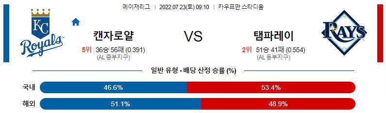 【MLB】 7월 23일 캔자스시티 vs 탬파베이