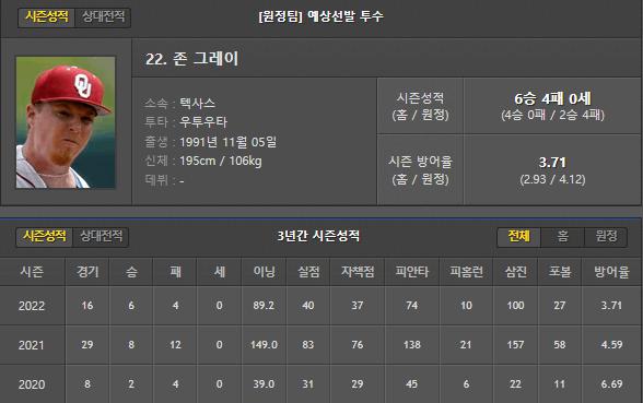 텍사스는 이번 경기 존그레이 선수가 선발로 등판합니다.