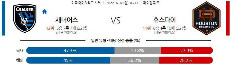 【MLS】 7월 18일산호세 어스퀘이크스 vs 휴스턴