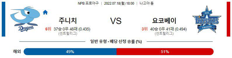 【NPB】 7월18일 주니치 vs 요코하마