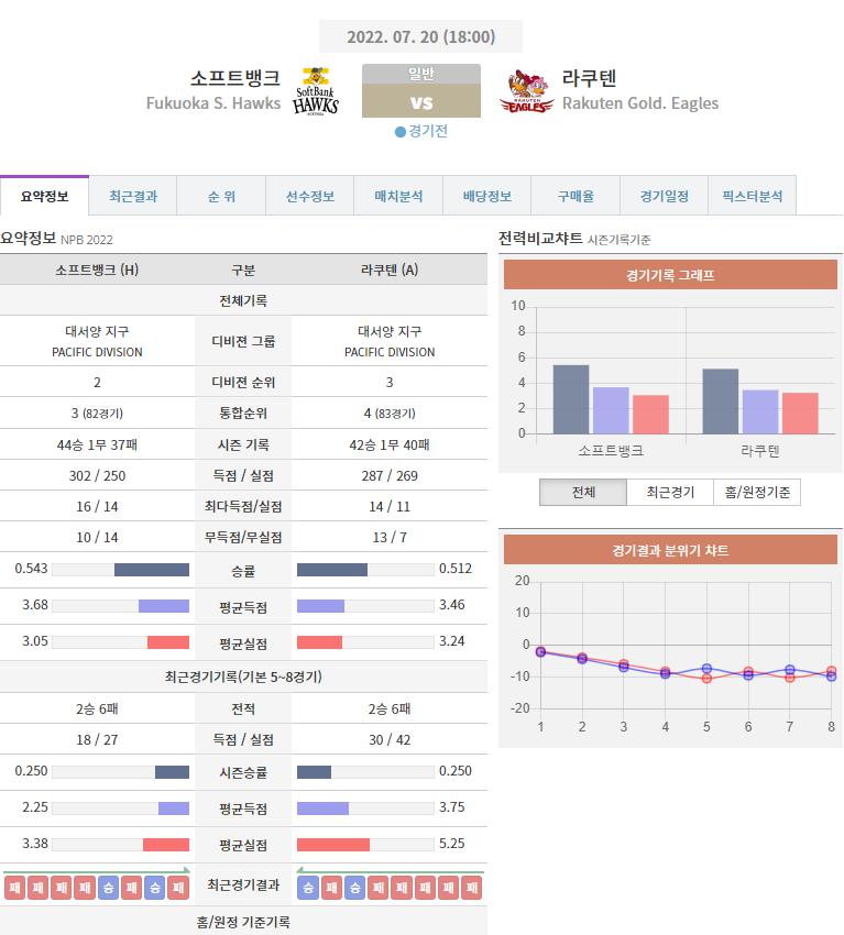 열람중 [NPB분석] 7월 20일 NPB 분석 라쿠텐 VS 소프트뱅크 2022.07.19 201