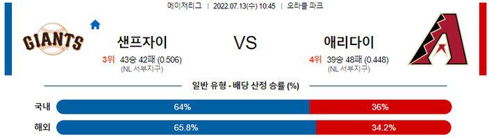 【MLB】 7월 13일 샌프란시스코 vs 애리조나