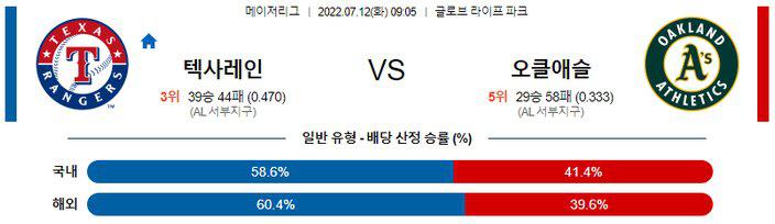 【MLB】 7월 12일 텍사스 레인저스 vs 오클랜드