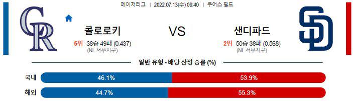 【MLB】 7월 13일 콜로라도 vs 샌디에이고