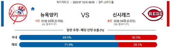 【MLB】 7월 13일 뉴욕 양키스 vs 신시내티