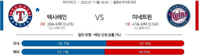【MLB】 7월 11일 텍사스 vs 미네소타