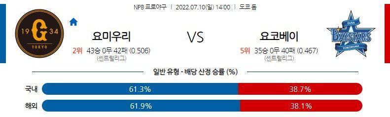 점검의 시간을 보내고 복귀하는 로메로 투수 보다는 스가노 토모유키 투수의 손을 들어줄수 있는 선발 매치업 이다. 또한, 전일 경기에서 승리를 기록했지만 목요일과 금요일 경기에서 무승부를 기록한 요코베이는 불펜의 소모가 많았던 상황. 요미우리 승리 가능성을 추천 한다.