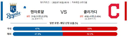 7월 10일 05:10 MLB 캔자스시티 : 클리블랜드
