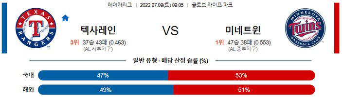 【MLB】 7월 9일 텍사스 vs 미네소타