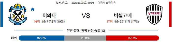 【J리그】 7월 9일 주빌로 이와타 vs 비셀 고베