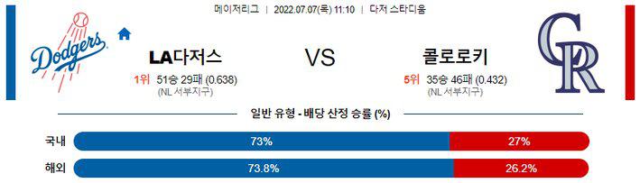 【MLB】 7월 7일 LA 다저스 vs 콜로라도화이트는 다저스의 5선발로써 임시로 로테이션을 돌고 있다. 워낙 많은 선발 자원이 부상과 징계 등으로 빠져있기에 그에게 기회가 왔는데 나름 역할을 잘해주고 있다. 박찬호와 다르비슈를 동시에 닮은 외모라는 재밌는 평가를 받는데 우완으로 정통파라는 점도 같다. 빼어난 삼진 능력을 보이고 있기에 어쩌면 꾸준히 기회를 받을 수도 있다. 콜로라도 상대로는 이번 시즌 1실점하며 3.2이닝을 틀어막았다.