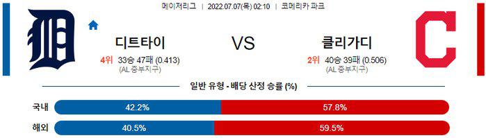【MLB】 7월 7일 디트로이트 vs 클리블랜드