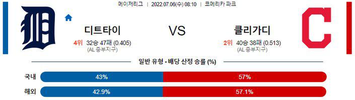 【MLB】 7월 6일 디트로이트 vs 클리블랜드